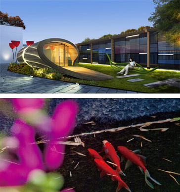 • 简约黑白线条投射斑驳光影,诠释自然清新的华美意象; • 楼体沿轴心动线自然铺展,营造舒适和谐的创意空间; • 仿木长廊、木质藤椅随性而置,打造不经意间的休闲办公体验;