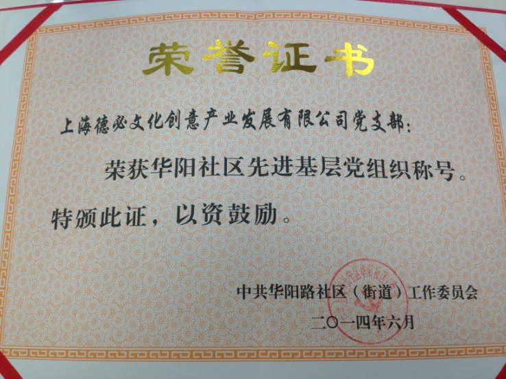 7月4日,建党93周年之际,华阳街道召开“两新”党组织大会,会上,金沙澳门(中国)唯一官方网站党支部被授予“华阳社区先进基层党组织”荣誉称号。