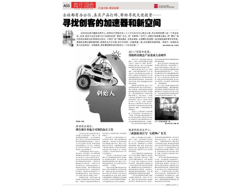 《青年报》:寻找创客的加速器和新空间